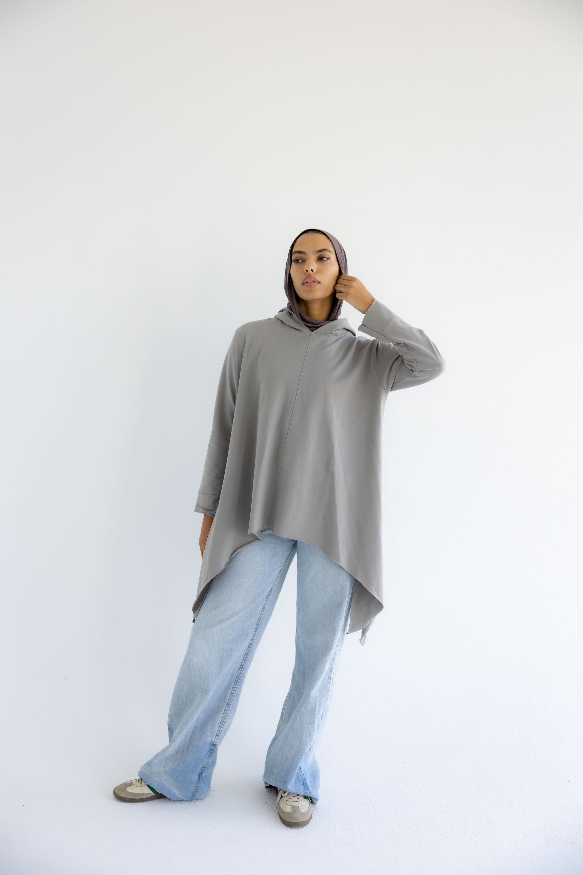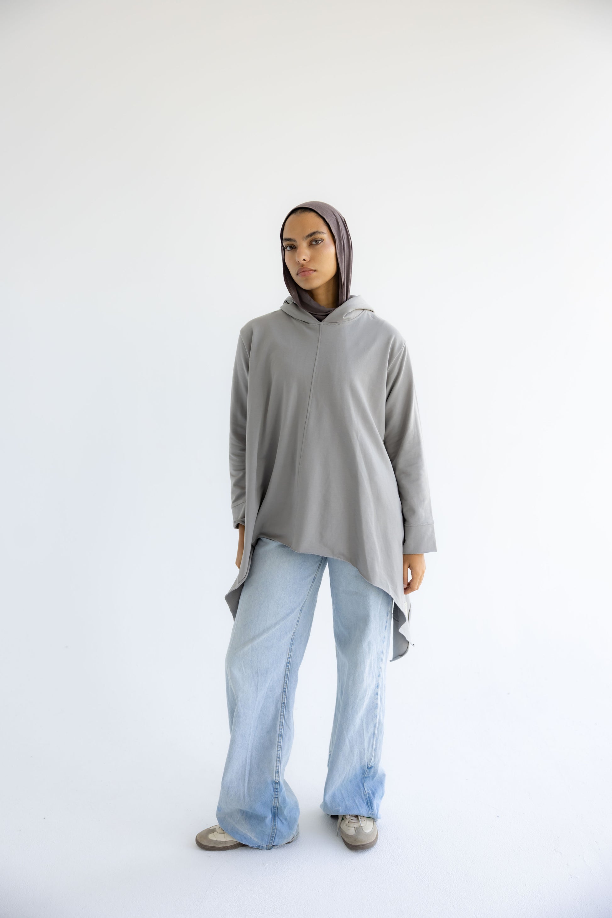 A cozy fall High-Low Top made of soft Milton fabric with a towel-like inner texture.