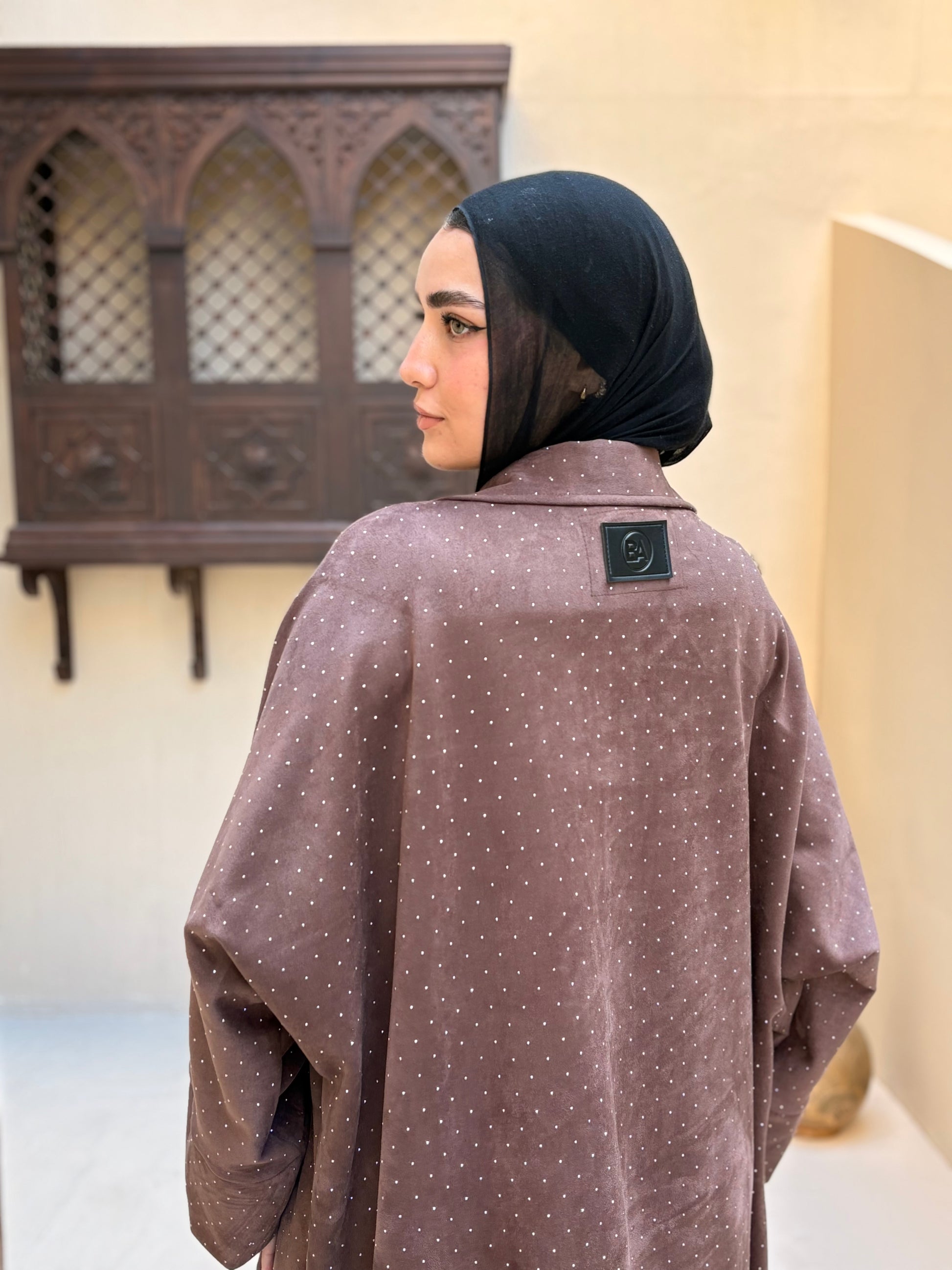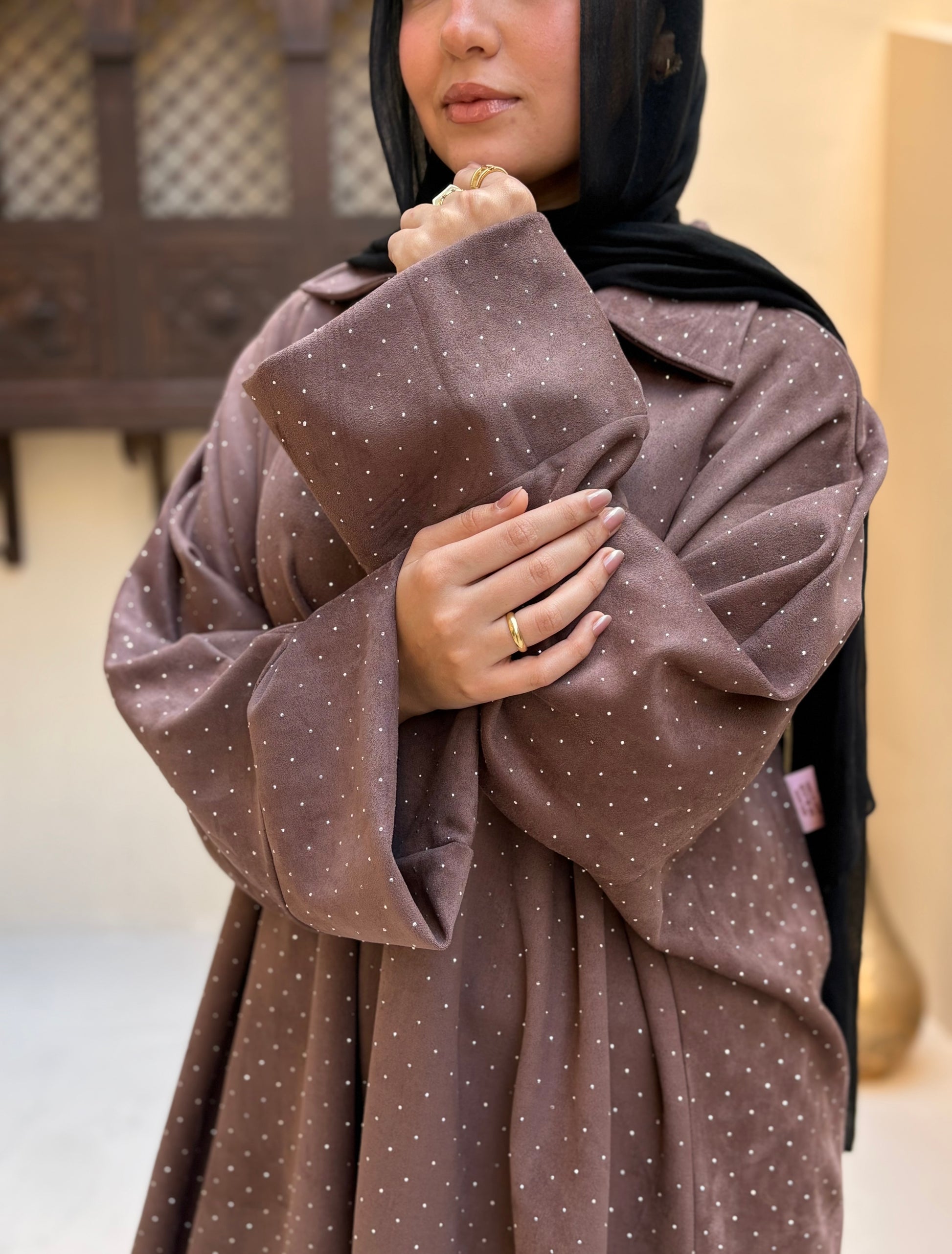 شيرت دريس ليالي بخامة سويد ناعمة ولمسة ستراس رقيقة تضيف بريق هادئ وأنيق.
