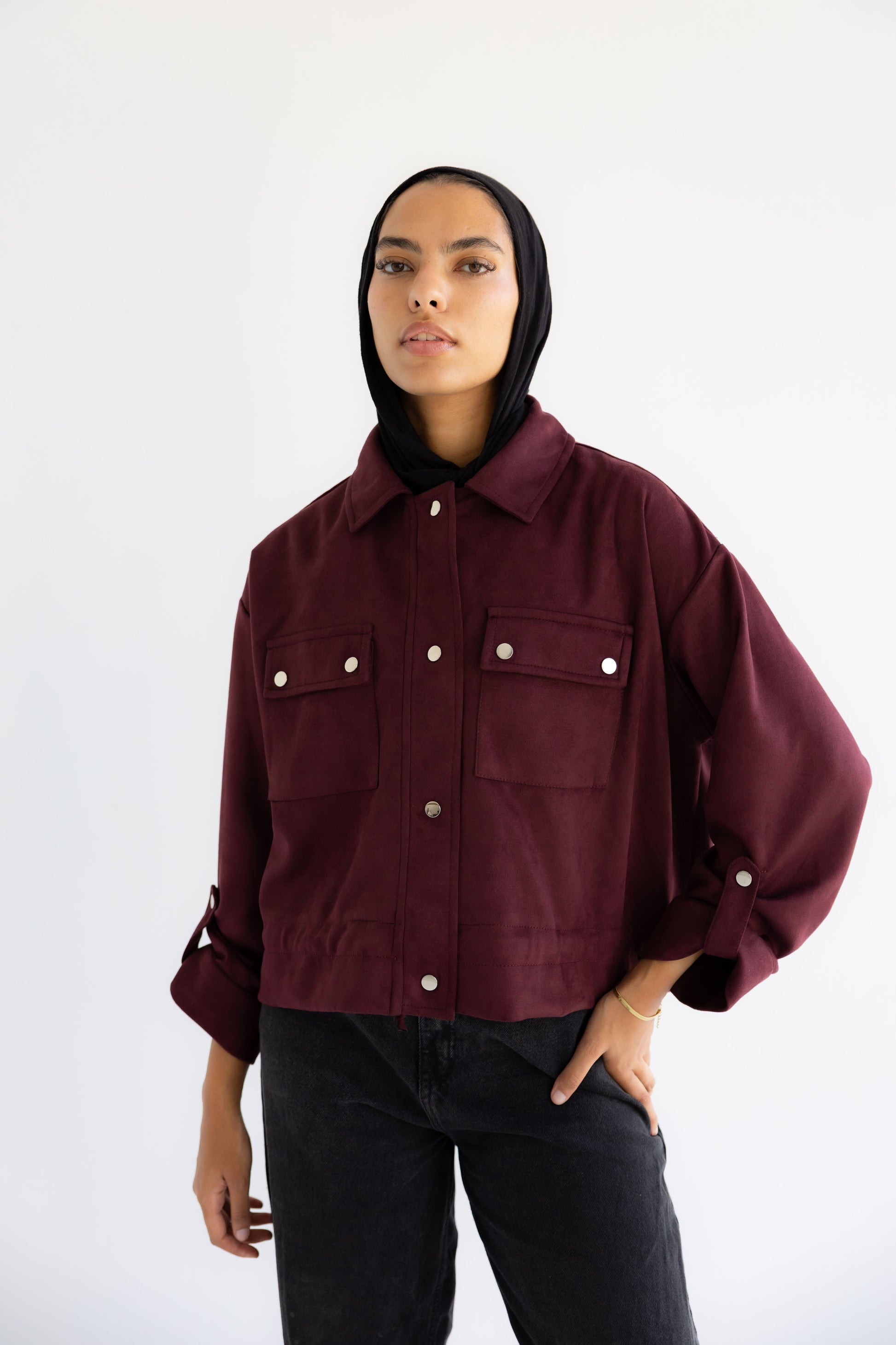 جاكيت مصنوع من خامة سويد ناعمة بتدي لمسة شيك ودافية.
